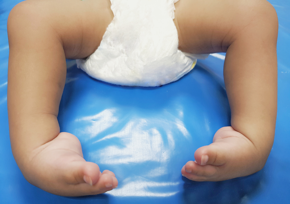 This is a condition in which your baby’s foot appears flat and is turned upwards on the shin bone and points outwards.
